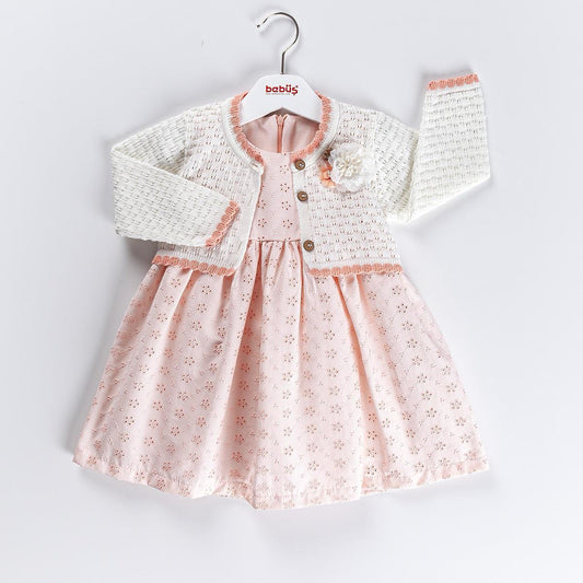 2-piece Girls Crew Neck Knitted Sweater and Dress set