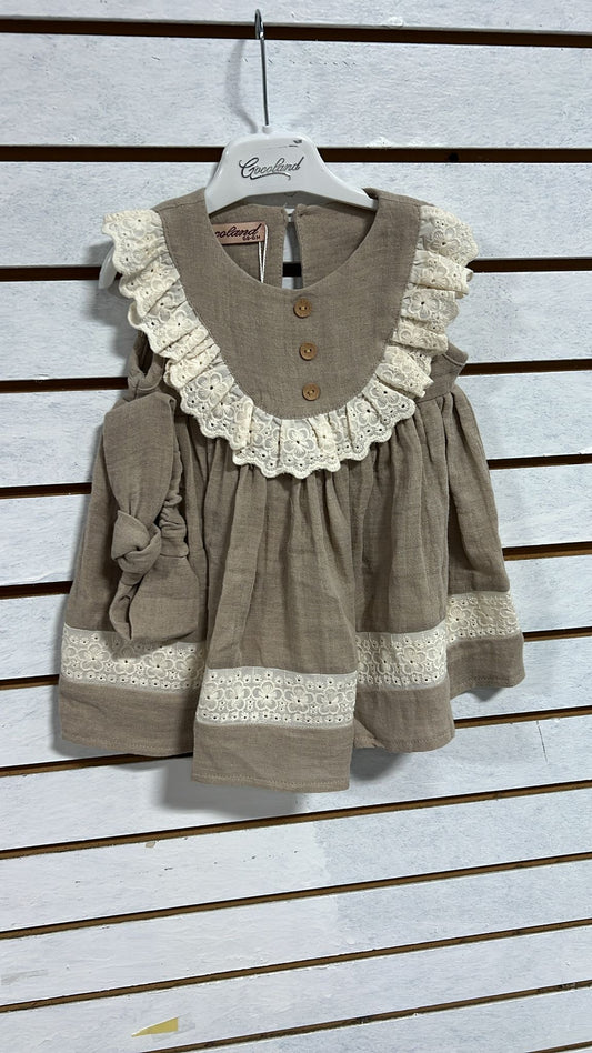 2-piece Baby Girls lace trim top, frill and bow centered shorts