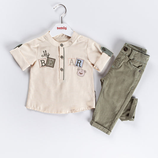 2-piece Boys "My Bear" Embroidered shirt and pants set