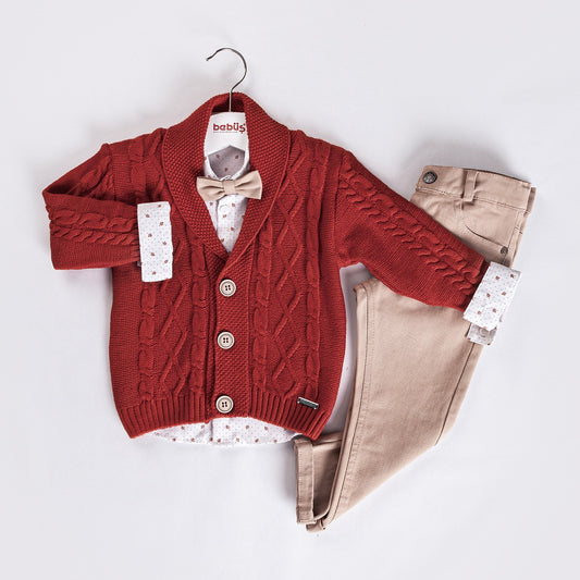 3-piece Boys Knitwear Long-Sleeve Cotton Jumper, Shirt and Pants set