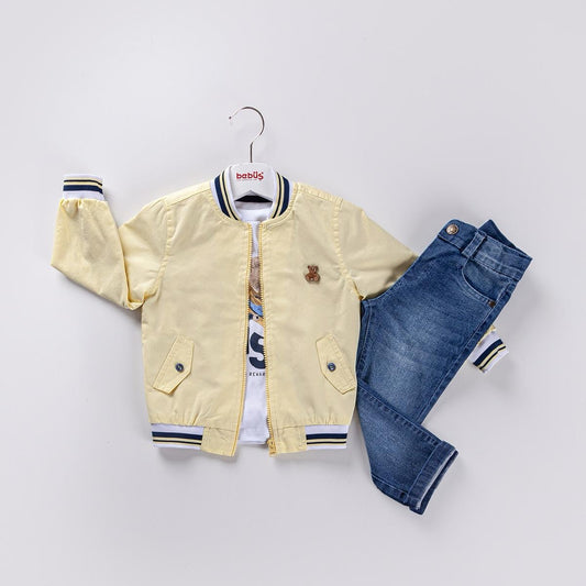 3-piece Boys Bomber Jacket, Shirt and Denim Pants set
