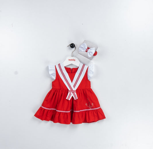 Girls Sailor Red and White Collared dress