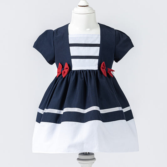 Girls Sailor White and Red Collared dress